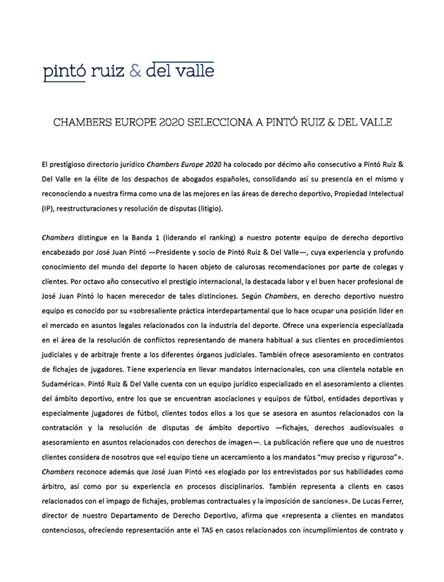 Best Lawyers Spain 2022 destaca a Pintó Ruiz & Del Valle y a once de sus abogados en seis áreas de práctica